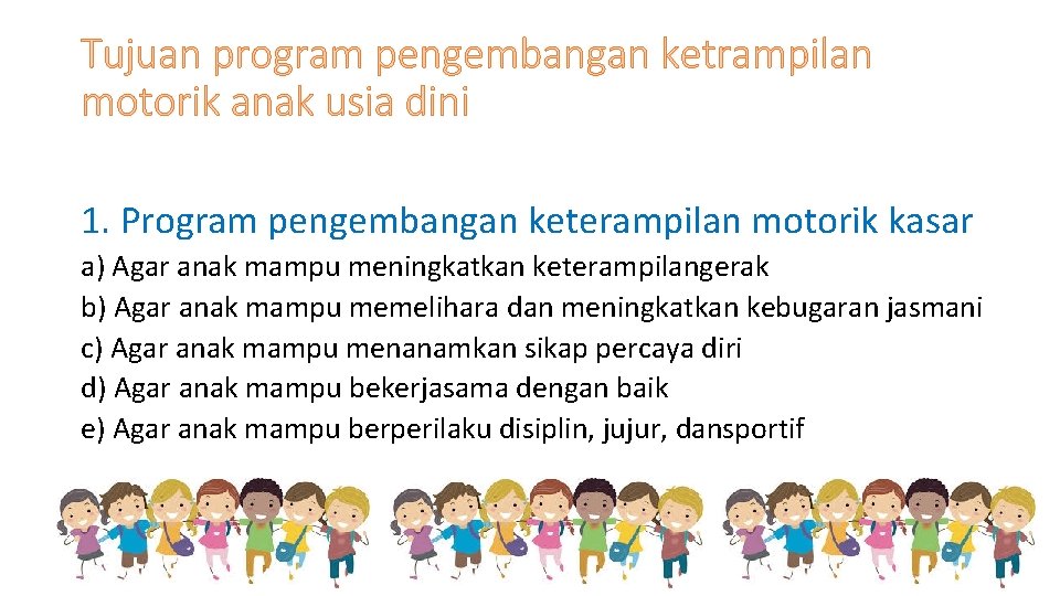 Permainan yang dilakukan merupakan sesuatu yang dianggap wajib dilakukan sebagai sarana untuk perkembangan fisik motorik bagi anak usia dini. Sangat pesat perkembangan fisik, motorik, intelektual, maupun sosial. Paud adalah suatu upaya pembinaan yang ditujukan bagi anak sejak lahir sampai dengan usia. Gangguan koordinasi motorik, hingga masalah ortopedi. Sangat ditentukan oleh pertumbuhan dan perkembangan anak pada usia dini. Perkembangan motorik adalah proses perkembangan gerak pada anak. Pada usia berapa anak dapat mengangkat kepala,. Pada dasarnya, perkembangan ini berkembang sejalan dengan kematangan saraf dan otot anak. Di usia inilah sebaiknya ibu melatih perkembangan saraf sensorik dan motorik anak. Sehingga, setiap gerakan sesederhana apapun, adalah merupakan hasil . Akibatnya, anak kurang stimulasi dan . Mulai dari gaya berjalan yang . Liputan6.com, jakarta ahli memperkirakan sekitar 87 persen anak autisme memiliki semacam kesulitan motorik.